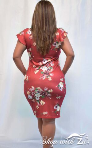 Wine Red Floral Print Bodycon