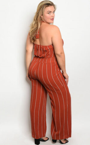 RUST STRIPES PLUS SIZE JUMPSUIT