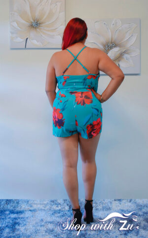 Red Flower Printed Surplice Romper